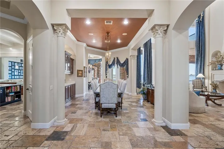 Price Improvement! Over 9,000 square feet of Furnished and Decorated Gulf-access waterfront living; an exceptional boating estate along Florida’s Gulf Coast. Set on over half an acre in historic Palmetto, just minutes across the bridge from vibrant Downtown Bradenton, this remarkable property offers deep, navigable water, a private dock, and a 13,000-lb boat lift providing direct access to Tampa Bay and the Gulf of Mexico; ideal for boating, waterfront dining, and spectacular sunset cruises. This high-and-dry residence has never experienced water intrusion from any storm and includes transferable flood insurance currently under $5,000/year, offering valuable peace of mind for waterfront ownership. Inside, refined coastal design unfolds across more than 9,000 square feet of living space, now offered fully furnished with curated furnishings and artwork (with a few exclusions) for a seamless move-in experience. The chef’s kitchen is designed for both entertaining and everyday living and features Sub-Zero refrigeration, Wolf gas cooking, double ovens, dual Miele dishwashers, built-in Miele coffee system, warming drawer, prep sink, ice maker, and generous workspace. Expansive living areas flow effortlessly to outdoor entertaining spaces where a resort-style pool and spa, outdoor kitchen with a new premium grill, gas fire features, and panoramic waterfront views create the perfect setting for relaxing or hosting guests. Additional highlights include a temperature-controlled wine cellar, billiards and bar room, private theater with projector system, exercise room, library/office, and convenient ground-level elevator access. The main-level primary suite offers spa-inspired comfort with direct access to outdoor living, while each additional bedroom features its own private en-suite retreat. The home also includes two full laundry rooms, ideal for larger households or extended-stay guests. Smart-home enhancements include Ring security, Alexa-enabled lighting, whole-home stereo, integrated central vacuum, solar-assisted water heaters, enhanced exterior door locks, and a Tesla EV charger. A brand-new tile roof (2025) further enhances durability and long-term value. With deep-water boating access, expansive sunset views, fully furnished living spaces, and proximity to marinas, dining, parks, and the charm of historic Palmetto, this remarkable estate delivers luxury coastal living on an impressive scale.