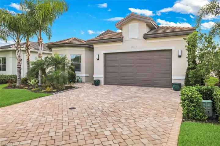 One or more photo(s) has been virtually staged, AI generated or rendered. Welcome to refined resort-style living in Valencia Bonita! This beautifully crafted 2023 Chandon floor plan at 28604 Moraga Ln offers a perfect blend of modern elegance, comfort, and functionality within one of Bonita Springs’ premier 55+ communities. This spacious four-bedroom, three-bath residence showcases an open-concept layout with volume ceilings, sleek porcelain tile flooring, recessed lighting, and expansive windows that fill the home with natural light. The gourmet kitchen is a true centerpiece, featuring quartz countertops, stainless steel appliances, custom cabinetry, and a large island ideal for entertaining. The generous primary suite provides a private retreat with a spa-inspired bath, dual vanities, and a walk-in closet. Additional bedrooms offer flexibility for guests, a home office, or hobby space. Step outside to your covered lanai and enjoy seamless indoor-outdoor living—perfect for relaxing or hosting gatherings while taking in the tranquil surroundings. Residents of Valencia Bonita enjoy an unmatched array of world-class amenities, including a clubhouse, resort-style community pool and lap pool, full-service spa, fitness center, beauty salon, theater, and vibrant community rooms. Stay active with pickleball, tennis, bocce, and scenic bike and jog paths, or unwind at the community spa/hot tub. The neighborhood also features a dog park, sidewalks, streetlights, and underground utilities for added convenience and charm. Experience the ultimate Southwest Florida lifestyle in a home that truly has it all.