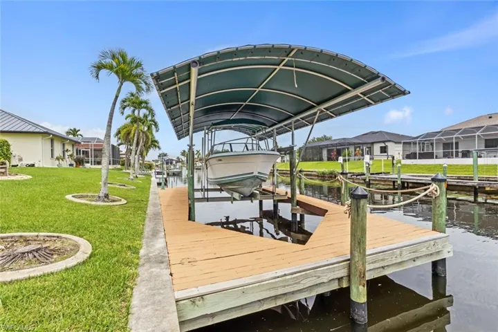 Priced BELOW assessed value! Don’t miss out on this great opportunity! This tasteful 3 bedroom, 2 bathroom Gulf access pool home boasts impressive curb appeal, a circular driveway, an excellent layout, and the highly sought after Southern rear exposure. Additionally, it features a captain’s walk dock equipped with a 12,000lb boat lift, complete with a canopy cover to keep your boat in pristine condition. You’ll also enjoy ample outdoor living space, thanks to the spacious pool deck, a covered lanai, and a heated pool for year-round enjoyment. And if you’re in search of a property that’s move-in ready and doesn’t need anything repaired or upgraded to start enjoying it, well you’re in luck here! This home is sold turnkey furnished and has been meticulously maintained—just pack your bags and settle right in. The kitchen showcases beautiful wood cabinetry and granite countertops, the ceilings are vaulted, and there’s no carpeting anywhere in this home. Also, and this is important, this home has experienced NO flooding during any storm. Plus, it comes with affordable and assumable flood insurance too. And for even more protection, there’s convenient accordion type hurricane shutters on all the windows & doors. No matter if you are searching for a full-time residence or a seasonal getaway this one will fit either scenario perfectly. And if you are interested in renting it out part of the year to offset some expenses, that’s no problem either. With its attractive layout and design, its appealing neighborhood, the fact that its sold turnkey furnished and its optimal rear exposure you should have no problem doing so! But at this unbeatable price, make sure you check it out before someone else beats you to it! **See virtual tour link for a 3D walkthrough**