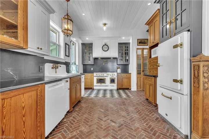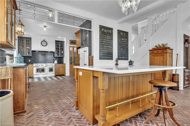 Formerly known as the iconic Bokeelia Tarpon Inn featuring 4 bedrooms, 5 bathrooms and may be purchased TURN-KEY. This historic estate blends early 1900s character with over $1 MILLION in high-end upgrades. PLUS, This home qualifies for 100% Bonus Depreciation on FF&E values!! Located on the northern tip of Pine Island, where the views simply do not get better. Enjoy water views from nearly every window in the home. Primary has Panoramic Views of Charlotte Harbor! With 2 BOAT SLIPS and lift access, you’ll have quick and easy entry into Charlotte Harbor, Matlacha Pass, and the Gulf. Stepping into the home, the grand front entrance offers a covered sitting space, a perfect place to soak in the sunshine, coastal breezes, and peaceful waterfront scenery. Vintage charm greets you at every turn, beautifully preserved and enhanced with modern updates. Natural light fills the home, creating a bright and airy feel. The gourmet kitchen is a true showpiece, featuring a Big Chill refrigerator and gas range with unlacquered brass hardware, a designer industrial Zephyr ventilation hood, and a brass pot filler for added convenience. Brick flooring is laid in a classic herringbone pattern, while dramatic soapstone countertops elevate the space. The open-concept living area showcases porcelain tile flooring and a stunning touchstone built-in electric fireplace. Just off the main living area, the laundry room adds convenience. Enjoy garden views from the downstairs guest bedroom. Upstairs, solid wood flooring and custom hardwood stair treads maintain the home’s historic integrity. You will find the expansive primary suite features vaulted ceilings and a cozy revolution, built-in electric fireplace. The spa-inspired primary bath offers water jet-cut marble mosaic tile on the vanity wall, shower inset, and shower floor, a freestanding soaking tub with a Kingston Brass floor-mounted tub filler and hand shower, and custom solid wood cabinetry beneath quartz countertops. Additional Features include: 2 A/C units, spray foam insulation, a walkable attic with additional storage, a high-efficiency tankless water heater, a permanently installed Generac standby generator, a HOOT aerobic septic system, ELECTRIC HURRICANE protection, and Kevlar protection for the upstairs lanai. The exterior is equally impressive with James Hardie shake siding, all-new Azek decking, railings, and stairs, and a custom-built pergola with electric. The oversized lot is landscaped with mature fruit trees along with a coral fountain surrounded by a rose garden. You are just minutes from world-class boating and fishing destinations including Boca Grande Pass and Cayo Costa. Also enjoy the Bokeelia Fishing Pier, charming island dining, Pine Island Center, and everything that makes Pine Island such a desirable coastal community. With breathtaking water views, historic significance, luxury finishes, and unmatched zoning flexibility, this is truly a one-of-a-kind investment and lifestyle opportunity.