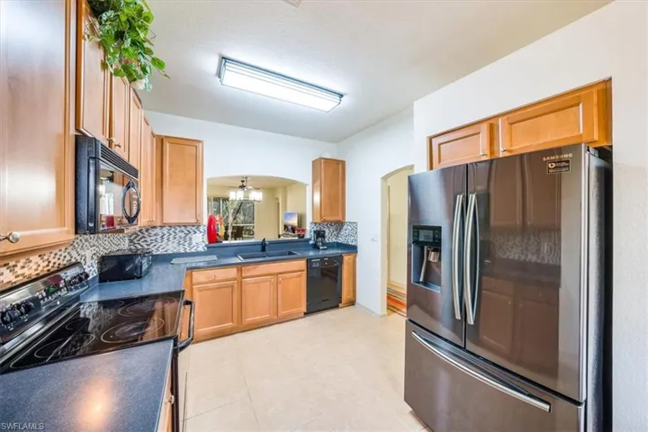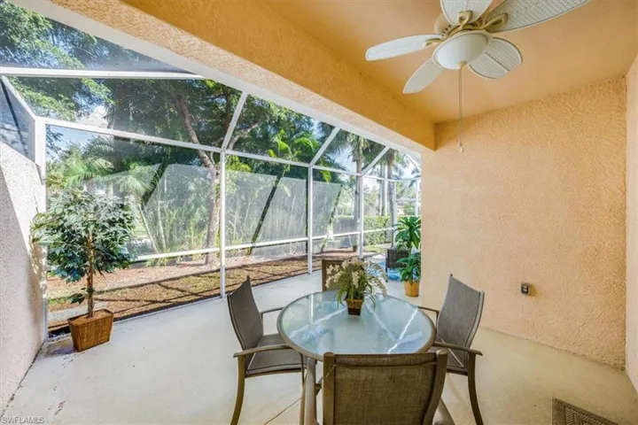 Impeccable villa showcasing two light-filled bedrooms on either side of a versatile den adaptable as an office or third bedroom. Freshly painted interiors and professionally steam-cleaned tile floors present a flawless backdrop awaiting your personal flair. The spacious eat-in kitchen greets you with a new refrigerator supplemented by an extra unit in the laundry room, ensuring ample cold storage for all your entertainment needs. With an air conditioning system less than two years old, efficiency and dependability are assured for years ahead. The expansive yard offers ample space for your furry companions and room to add a pool, while the extended screened lanai is pre-wired for a hot tub or spa, promising relaxation and tranquility. A two-car garage provides ample storage for your belongings, and the nearby clubhouse offers an array of amenities, including an outdoor heated pool, kiddie splash pad, fitness center, locker rooms, library, billiards, bocce ball, and a picnic area equipped with gas grills. The community of Reflection Lakes of Naples offers great value with a low monthly HOA fee which covers your cable, internet, lawncare, irrigation water, sewer, clubhouse, community pools, additional recreation facilities, street lights and more! Situated in an enviable location, this residence lies nestled between the coveted white sand beaches of Naples and Marco Island, providing the ultimate blend of coastal living within a convenient 10-mile radius. Embrace the chance to transform this dwelling into your personal oasis and secure your own slice of paradise today!