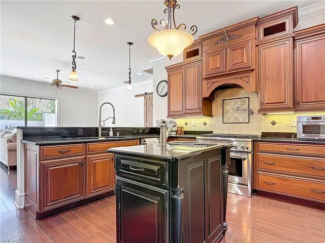 For movie enthusiasts, the custom theater room offers an immersive experience with comfortable seating and state-of-the-art technology for unforgettable family movie nights. The spacious open-concept living area flows effortlessly into a modern gourmet kitchen, outfitted with top-of-the-line appliances and stylish finishes.