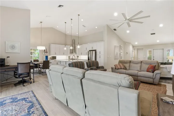 Once you step into this turnkey condo, you will find a LIKE NEW unit. Recently totally renovated in a soft neutral color scheme with tile flooring throughout. The kitchen is WHITE and BRIGHT with a beautiful backsplash to accent the quality of craftsmanship. All new appliances to compliment the total package. Beautiful quartz island & counter tops that offers a quiet pattern. The great room and kitchen over look a beautiful lakefront view. Dining/Flex room has been virtually staged as a formal dining room. Enjoy hours on your picture frame screened lanai and witness the wildlife Wildcat Run offers. For peace of mind, the sellers have installed electric fabric hurricane shades. The primary bedroom suite is also renovated with a beautiful soaking tub, walk in shower and walk in closet. The guest suite was updated as well. There is a golf membership available and sellers will negotiate outside the listing price. 2 car oversized garage provides plenty of storage. The 18 hole Arnold Palmer signature golf course will keep you coming back to enjoy many rounds of golf. On campus is a state of the art fitness center with a certified trainer available. Tennis, pickleball, and bocce courts will challenge you. Also on campus are two restaurants providing casual dining in the indoor/outdoor grill room and upstairs club house for a more formal dining experience. Wildcat Run is minutes away from I-75 N/S corridor, 3 large shopping malls, casual & fine dining establishments. White sandy beaches of the Gulf of America within a 20-30 minutes drive. Schedule your showing appt today. This property will sell quickly.