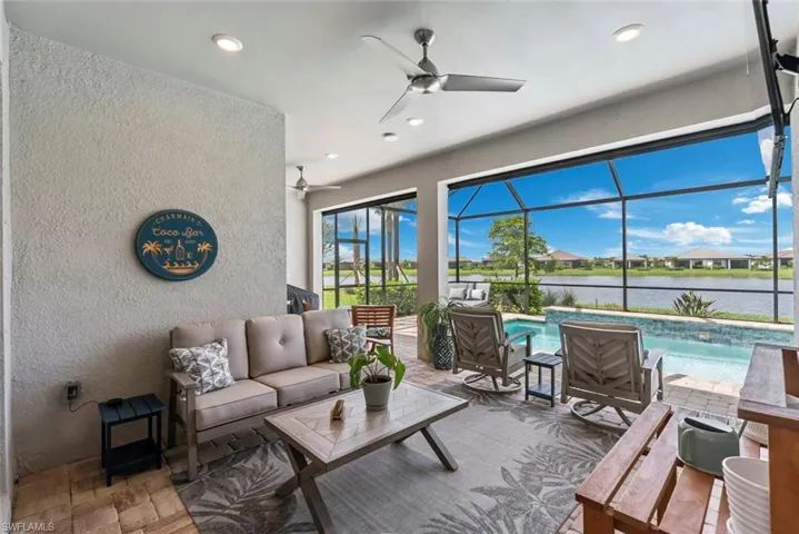 Experience refined living in this beautifully appointed Prestige model, a 2-bedroom plus den, 2.5-bath home in Del Webb Naples in Ave Maria, Southwest Florida’s premier 55+ community. Completed in 2022 and priced attractively below comparable new builds, this home offers over 2,100 square feet of thoughtfully designed space, including elegant upgraded wood like tile flooring, high ceilings, and an impressive chef’s kitchen featuring premium Kitchen Aid stainless steel appliances with quartz countertops, custom cabinetry, and an expansive walk-in pantry with custom built-in cabinetry. The primary suite is a private retreat featuring an extended walk-in shower, dual custom closets, and convenient laundry access with pass-through in primary closet. A versatile den/flex room provides the perfect setting for a home office or quiet sitting area. Enjoy seamless indoor-outdoor living on the screened lanai with storm screens, an outdoor TV setup, and a heated pool overlooking peaceful pond views. Smart home technology, an extended epoxy-finished garage, and a collection of premium upgrades elevate both comfort and style. Residents of Del Webb enjoy an exceptional lifestyle with a resort clubhouse, fitness center, golf, pickleball, tennis, bocce, and a full-service restaurant. This golf cart friendly community is within minutes of Publix, the Ave Maria Town Center for shopping, lunch or dinner around the town center, close to the Midtown Plaza featuring Ace Hardware, Lego Pizza, Dunkin’ Donuts and NCH Urgent Care and stay in touch with the Ave Maria University for entertainment, sports events, and plays! This move-in ready newer Prestige model is a rare opportunity to enjoy modern luxury without the wait! Schedule your private tour today to tour this fabulous newer home!