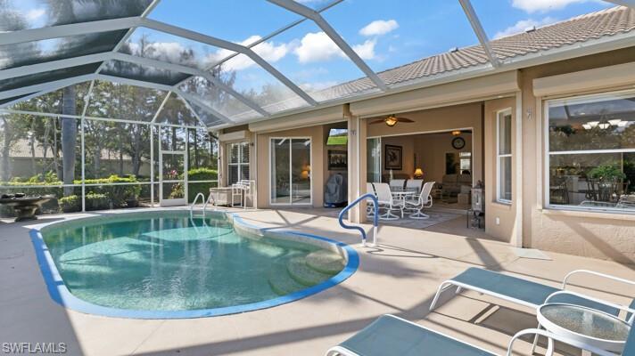 A new Panoramic Pool Cage gives you the impression there is nothing separating you from the beauty of outdoors. You will appreciate the 3 CAR GARAGE and the floorplan of the St. Charles gives you the layout of a large entainment area. Starting at the front door and continuing all the way outside to a dining area and the wonderful pool. Also you will see the outside from the Master Bedroom, the Kitchen and Breakfast Area. The Heritage Palms community has many amenities – 36 holes of golf, tennis, pickleball, a large activity center with library, meeting room and scheduled exercises classes – three different restaurants and more. The Community is located in Southwest Florida and just minutes to I-75 Airport, other restaurants, baseball stadiums, Topgolf, B Mann Performing Arts Hall and more.