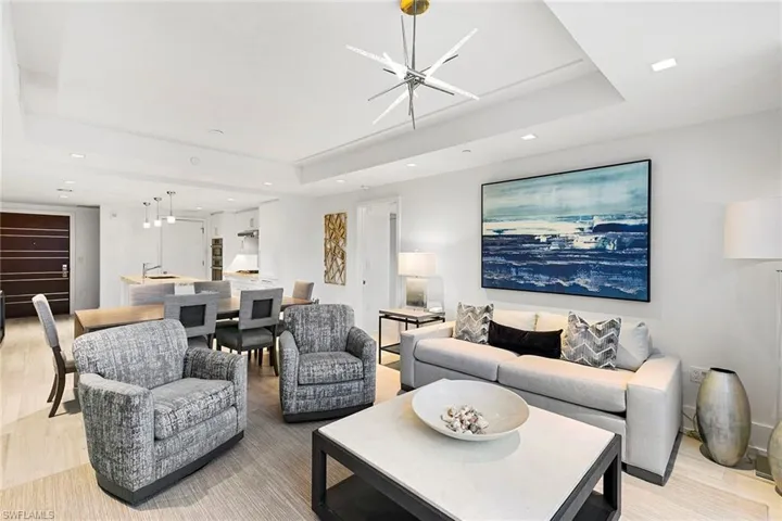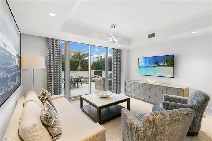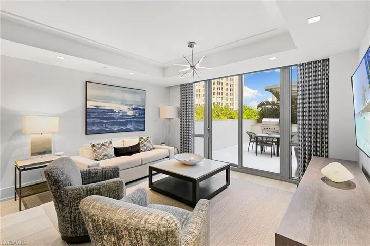 Exceptional opportunity to claim this residence at a great price in Mystique, Pelican Bay’s newest and most prestigious high-rise. Offered beautifully furnished, the home showcases refined finishes and a spacious open-concept layout designed for comfort and style. The kitchen is a standout, complete with premium appliances, a natural gas cooktop, marble countertops, custom cabinetry and pantry. Just beyond, the bright and inviting family room opens to a spectacular outdoor terrace with gas grill and large patio area, creating a seamless indoor-outdoor living experience. This residence’s remarkable highlight is its oversized terrace, thoughtfully designed with a luxurious outdoor kitchen and lush tropical landscaping, ideal for relaxing or entertaining. Residents of Mystique enjoy an elevated lifestyle with 24-hour front desk staffing and concierge services. Amenities include a resort-style pool and spa, tennis courts, fitness center, social and meeting spaces, a spa with infrared sauna and a private theater. Pelican Bay privileges further enhance the experience, offering access to beach club with beach chair and umbrella service, two beachfront restaurants, tennis and pickleball courts, a fitness center, lifelong learning programs, scenic recreational and biking paths, as well as canoeing and kayaking opportunities.