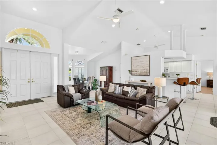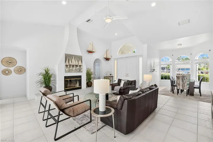Meticulously maintained by its original owner, this 3 Bed + den, 2 bath Gulf access home offers over 2,120 sq ft of living space with never-flooded peace of mind. Enjoy spectacular intersecting canal views from nearly every room! The spacious layout provides multiple access points to the expansive lanai—from the primary suite, kitchen, dining area, and den—making indoor-outdoor living effortless.