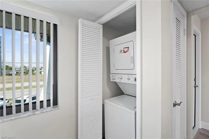 Completely remodeled and move-in ready Gulf access condo in the heart of Cape Coral! This spacious 2-bedroom, 2-bath second-floor unit offers nearly 1,300 square feet of beautifully updated living space. The stunning new kitchen features white wood cabinetry, quartz countertops, and brand-new stainless steel appliances. Durable wood-look luxury vinyl flooring flows throughout the entire unit, creating a clean, modern feel. Both bathrooms have been fully remodeled, and the home includes all new plumbing fixtures, light fixtures, and a new hot water heater (2025). Enjoy Florida living year-round from your expansive screened-in lanai — the perfect space to relax or entertain. Additional upgrades include new front and rear storm doors, hurricane shutters in the rear, and impact windows for added storm protection. Located on the second floor, this unit had no flooding or hurricane damage from recent storms for added peace of mind. The building features a new roof (2025), and dock space is available on a first-come, first-served basis through the association — offering Gulf access boating opportunities. Beautifully updated, protected, and priced to sell!!!
