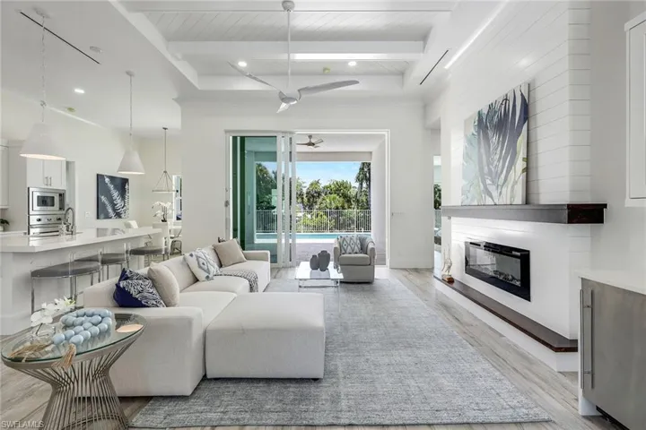 Significant price reduction. Priced to sell!!! High and dry and FEMA compliant home in trendy Lake Park neighborhood just two block off of 41. Why be worried about your investment? Priced to sell! Fully staged and move in ready!!! Nestled on a charming street in the exciting neighborhood of Lake Park. Expertly designed by Dave Wainscott architects, this new home boasts 4 bedrooms + a den and 3.5 baths. Complete with a gourmet kitchen, Viking appliances, quartz countertops, and a dry bar. The great room’s shiplap fireplace and inlaid ceiling make for a beautiful, comfortable coastal feel. The floor-to-ceiling 12-foot custom 3-panel sliding glass doors open up to the pool with a swim shelf and spa that overlook a quiet waterway with bird watching galore. The primary bedroom sliders lead onto the ivory travertine pool deck and covered lanai. The two-car garage has epoxy flooring and a paver stone driveway. This home is just steps away from the up-and-coming design district, infamous 5th Avenue shopping and dining, and Naples’s white sandy beaches. There is no HOA in Lake Park and there is no better-priced new construction home in 34102!
