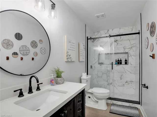 Discover your ideal home!! NEW ROOF 2023. An exquisite blend of style, comfort, and practicality. Nestled in a prime location, this spacious 5-bedroom, 3-full bath residence offers the perfect balance of a tranquil retreat and a vibrant lifestyle, being just minutes away from neighborhood shopping and local dining spots. The kitchen, the heart of this home, is a true masterpiece. Boasting stunning granite countertops, custom cabinets, and a full-height backsplash, it combines beauty and functionality effortlessly. It’s ready to inspire your culinary adventures, from the first meal shared with loved ones to countless future feasts. Step through the French doors from the kitchen and you’ll find yourself in your own private backyard haven. A paved walkway leads to a spectacular fire pit and seating area, where you can unwind and take in the beauty of Florida’s year-round evenings. The fully fenced yard offers a safe and secure space for children and pets, while the 5-zone irrigation and sprinkler system ensures that your outdoor spaces remain lush and vibrant with ease. Inside, the home continues to impress with thoughtful features and premium amenities. On the main floor, a guest or in-law bedroom with its own private bathroom provides an ideal space for visitors or extended family, offering both comfort and privacy. The second floor is home to the enormous master bedroom, a true sanctuary where you can retreat at the end of the day. This spacious room offers ample space for all your furnishings and personal touches, ensuring a peaceful and restful atmosphere. Additionally, the upper level includes a versatile bonus room, perfect for a playroom, home office, or media center, along with the remaining bedrooms that are both comfortable and well-appointed. One of the standout features of this property is the built-in pest control system, which ensures a clean and comfortable living environment throughout the year. This thoughtful addition is just one example of the home’s commitment to convenience and quality, providing you with peace of mind. With its exceptional design, luxurious features, and ideal location, this home is more than just a place to live, it’s a place to thrive. Don’t miss the chance to make this beautiful property your own and begin creating lifelong memories with your family today.