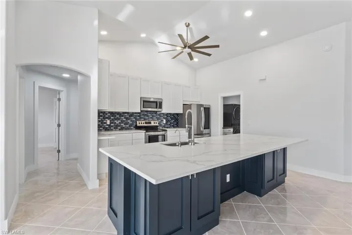 Attention to detail abounds in this stunning 3 bedroom plus den pool home that has been completely updated with many exceptional designer touches. The expansive kitchen is undoubtedly the focal point inside the home, featuring what’s likely one of the largest islands you’ll find on the market today. It boasts a massive high-quality quartz countertop, a high-end refrigerator, and striking backsplash tile. The floorplan has even been improved to truly open up the space, resulting in a seamless and highly functional layout that’s perfect for everyday enjoyment. The home offers the highly sought-after southern rear exposure along with an exquisite custom pool featuring a waterfall, built-in table, and an expansive full-width paver pool deck. Many features in this home are new—too many to list here—from the cabinetry and appliances to the vanities, the entire HVAC system as well as the lighting and ceiling fans. Additional highlights include tile flooring throughout, tall ceilings with extra tray details in the generously sized primary suite, walk-in closets in all three bedrooms, a fully fenced yard for pets, added hurricane protection, an extra-wide paver driveway, and the peace of mind of knowing no flood insurance is required, as the home is not located in a flood zone. The primary suite offers tranquil pool views, and the bathroom has been beautifully updated. The screened lanai, portable spa, and convenient guest bath with pool access make this home ideal for both everyday living and entertaining. A new roof was added in 2023, so was a new water heater and a new washer and dryer are included too. Situated in a desirable area of late model homes, this low-maintenance property is truly move-in ready. As an added bonus exclusive to this home, special, potentially below-market mortgage rates may be available—an incentive that could save thousands. Easy to see—schedule your private tour today!