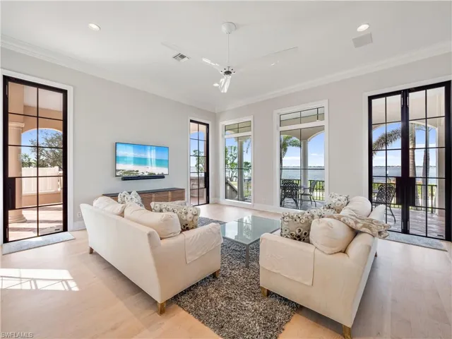 Welcome to 6005 W Riverside Drive. This stunning Caloosahatchee river front estate offers 5 bedrooms, an amazing waterfront office, an expansive game room, an indoor gym, 4 full bathrooms, 2 half bathrooms, over 6,300 square feet of indoor living space, and a large 3 car garage. Originally designed by world renowned architect W.A. Bud Lawrence, this property offers a unique blend of traditional stately architectural details and new coastal modern style. Completely reimagined in 2016 by Dwayne Bergmann interiors, you’ll enjoy the new chef’s kitchen with dual islands, Thermador appliances, a wine refrigerator, Kohler fixtures, high end custom cabinetry, quartz countertops, hardwood maple flooring, all new LED lighting, and so much more. The home handled Hurricane Ian very well and sustained ZERO interior flooding, however since 2022, the home has been put through even more extensive renovations including all new PGT IMPACT windows, Suncoast Iron IMPACT rated French doors throughout, a BRAND-NEW ROOF (2023), all new gutters, rebuilt and extensively waterproofed balconies, a brand-new master bathroom renovation, interior and exterior paint, and a brand-new dock with a 10,000lb lift. Additional features include a WHOLE HOME 33.5kW Generac GENERATOR, an outdoor kitchen with a high end 42” Twin Eagle grill, a 500-gallon buried propane tank, Rheem high efficiency water heaters, and a Culligan whole home water treatment system. The floorplan offers numerous living/entertaining spaces, along with comfortable separation of spaces between the bedrooms. The ground level game room offers an expansive space for a billiards table or theater. Off the game room is the fully equipped gym with protective flooring and custom mirrors. The guest bedrooms are generously sized and all have access to a bathroom. The master suite offers access to a private balcony overlooking the river, an expansive walk in closet with custom cabinetry, and a stylishly designed master ensuite. Outside you’ll enjoy a number of different under truss seating areas that offer the best water views you can find and year-round sunsets. The private pool area offers a comfortably sized heated pool and plenty of surrounding deck space. Situated on a corner lot, you have the feeling of expansive space and exclusivity. The Twin Palm Estates neighborhood off McGregor is one of Fort Myers most desired waterfront neighborhoods with unique homes and a comfortable atmosphere. With easy access to Downtown Fort Myers, Sanibel Island, Fort Myers Beach, RSW International airport, numerous shopping & dining options, you’ll love the lifestyle offered here.