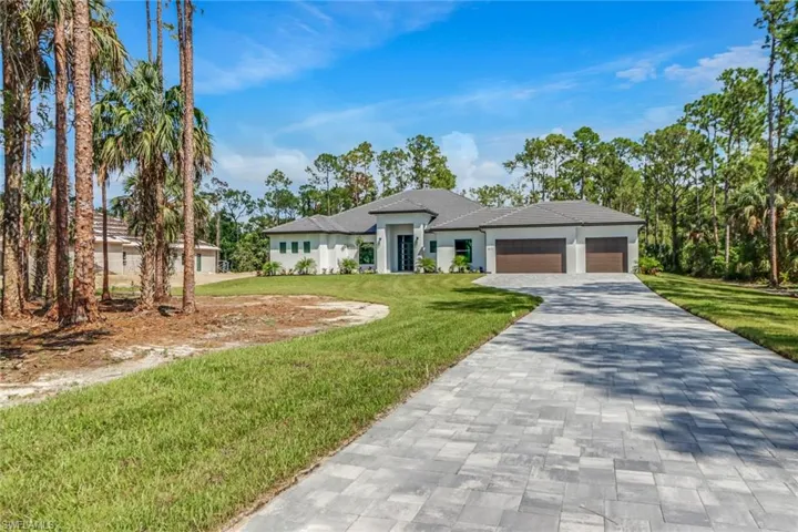 **READY TO MOVE IN NOW** ONE BLOCK AWAY FROM COLLIER BLVD** **100% UPLAND LOT*** Attention Home Buyers, this new MODERN & SOPHISTICATED new construction POOL home is ready for you to move right in! Packed with upgrades and special features, this house is a true gem. With 4 bed + den and 4 bathrooms, there is plenty of space for your family to spread out and enjoy. The 3-car garage provides ample room for vehicles and storage. Situated on a sprawling 2.50-acre lot, this home offers privacy and plenty of room to roam. The striking tile roof and brick paved driveway add to the curb appeal. Inside, you’ll find an open floor-plan concept with an island kitchen that is perfect for entertaining. This house is built with quality in mind, featuring hurricane-resistant impact windows and doors! The high efficiency AC and reverse osmosis system ensure comfort and clean drinking water. Imagine relaxing in your very own oasis, enjoying the Florida sunshine. Situated just one block away from Collier Blvd, you’ll have easy access to all the amenities and conveniences of town. The best schools in the area are also within a 10-minute drive! Surrounded by beautiful neighboring homes, this street offers a sense of community and pride of ownership!