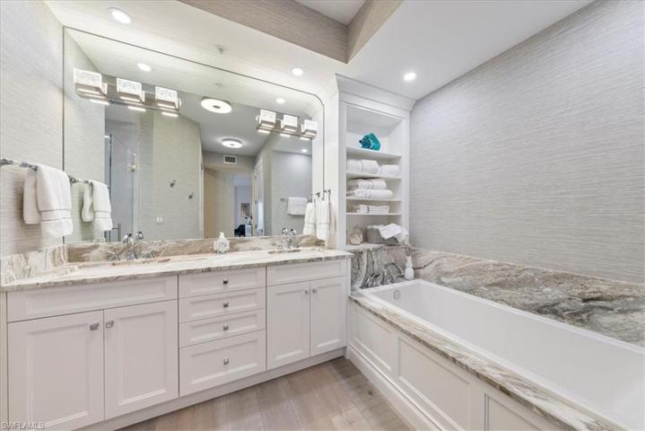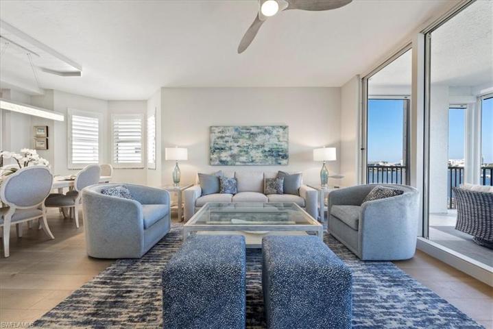 This spacious end unit has been renovated and furnished to perfection. High end finishes and furniture compliment the amazing Bay Views off your large lanai! With separate living floor plan you can enjoy the primary suite with built out closets, gorgeous shower, large tub, dual vanity, and Bay Views with nice separation from family and guests. This end unit has 3 full bedrooms plus a den/flex space off the kitchen and 2 full baths and powder bath. Light and bright from all of the additional windows afforded to this end unit including guest suites with views vs looking into the hallway of the building. This community is gated so security is top of mind as you pull through the gate and up to your secured door. Outside the unit there is a pool along the bay and an additional resort style pool and fitness center! Once you leave your resort, you can walk past the new Ritz Residences of Naples on your way to beautiful Vanderbilt Beach! Or, you can head to the Pavilion for the movie theater, ice cream shop, Brooks Burgers, Skillets, Tacos and Tequila, LA fitness, and so much more! If you want more options just steps away you can head to Mercato for Whole Foods, Nordstrom Rack, Cycle Bar, Yoga Lab, or a huge range or dining. Sunsets at Gumbo Limbo on the beach at the RitzThe best nightlife in Naples is right down the street so no matter what you enjoy, it is close!