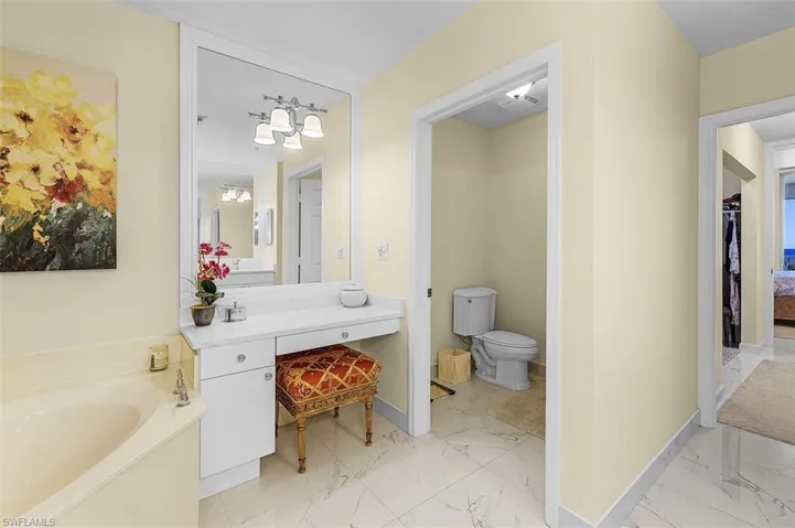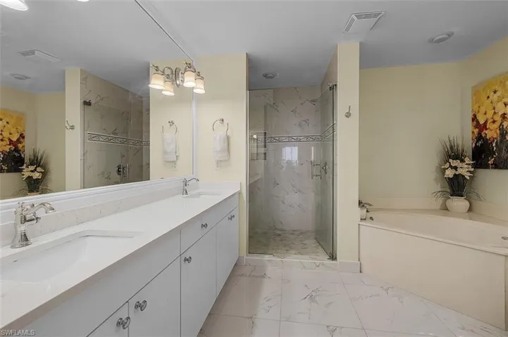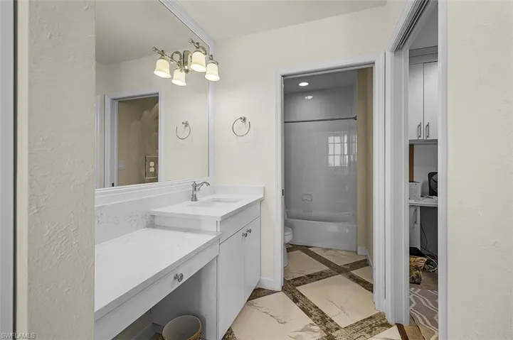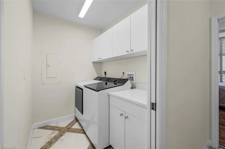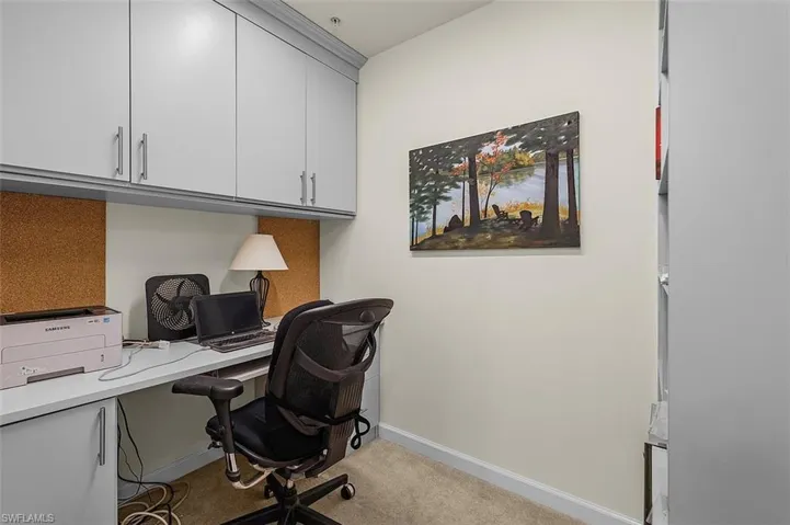 along with custom display and storage hutch. Kitchen with custom cabinetry, SS appliances and wine cooler. Cozy dinette with spectacular views. Dramatic tile flooring with marble and wood look pattern. Lanai with Italian ceramic planking.