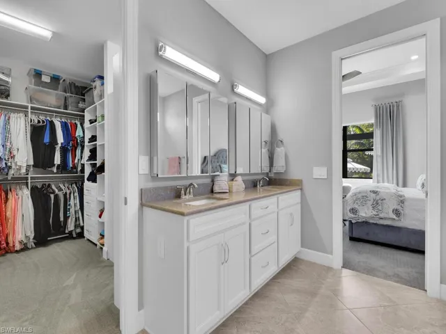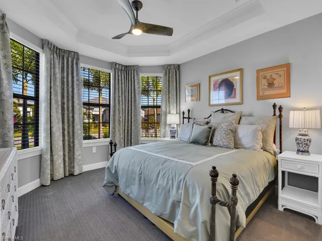 The primary suite is large in size and boasts a custom closet for added convenience and organization. Step outside to the extended lanai with picture view screening, where you can unwind in the heated salt-water pool while taking in the breathtaking private preserve and lake views.