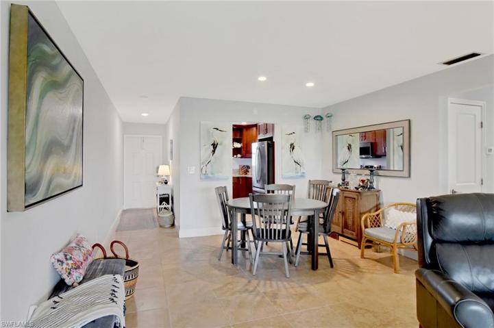 Beautiful Cape Coral gulf access condo. 1176 Square foot second floor unit. Two bedroom two bath tastefully updated and decorated. Granite counters along with newer stainless steel kitchen appliances. Open living room to a spacious screened lanai with LPL laminate flooring. Upgrades include appliances, solid core interior doors, professionally painted, lanai flooring, A/C condenser, and new roof. Gorgeous canal views. Slips may be available upon approval of HOA. 55 + community, covered carport, community pool, and walking distance to Cape Coral downtown restaurants and shopping.