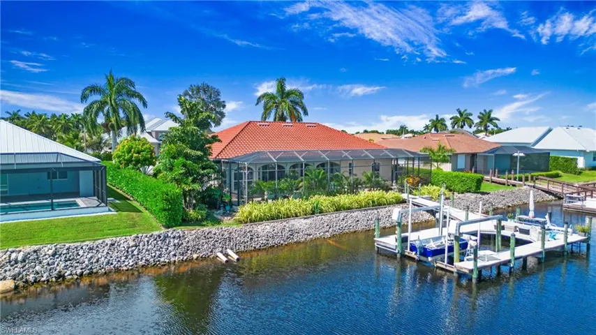 Welcome to 175 Sunset Cay, a waterfront gem in the serene Port of the Islands community of Naples! This meticulously maintained single-family home offers direct water access to the Gulf of Mexico through the picturesque 10,000 Islands. Featuring 4 bedrooms and 3 full baths, this residence includes a formal dining room, a sitting room, and a gourmet eat-in kitchen complete with stainless steel appliances and granite countertops. The 2-car garage provides ample storage and convenience. The circle-paved driveway, surrounded by lush tropical landscaping, enhances the beauty of this waterfront property. With a desirable northern exposure, you can enjoy unbeatable Florida sunrises and sunsets from the comfort of your spacious screened-in lanai. Your private outdoor oasis includes a solar-heated pool overlooking the marina and wide intersecting water views of the Faka Union River. The generous boat dock allows you to board your vessel with ease and set off for exceptional beachcombing and fishing excursions. Located only 20 minutes from Marco Island, and 30 minutes from downtown Naples. Experience breathtaking views and the tranquil natural surroundings that make 175 Sunset Cay an idyllic waterfront retreat!