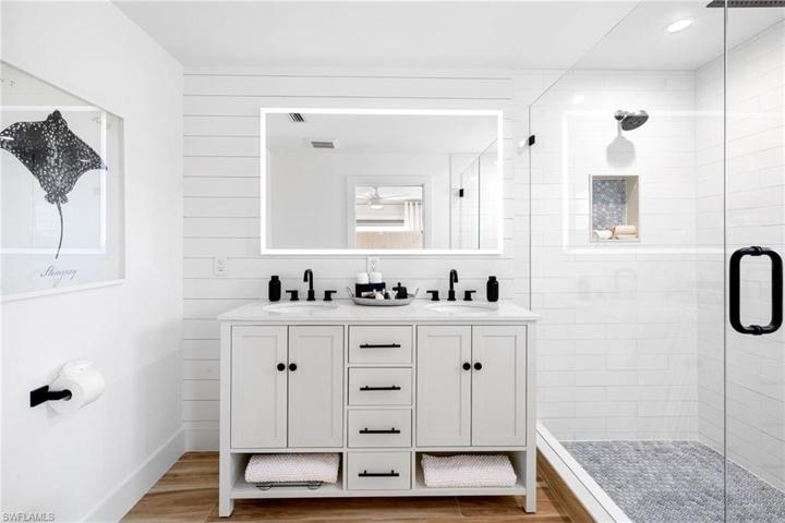 “WOW” FACTOR! Just blocks from the BEACH, this stunning turnkey 3 bed/2 bath home combines the luxury and convenience of new construction features with the old world charm of the classic Naples beach bungalow. Close to The Ritz and Mercato for dining & shopping, short drive to 5th Ave S! Gutted to the studs, every detail of this home was meticulously updated w/ the best materials and finishes, this home has the “it” factor! In-ground heated salt water pool with spa and plenty of space for lounging is the focal point of the private fenced and landscaped back yard. Kitchen w/ quartz island & countertops is the gathering place for this home, with room for a crowd at the dining room table & island seating. Chefs & guests alike will enjoy the S/S appl, gas stove, wall oven, island & side bar. Large living room w/ plush seating & screen TV for peaceful evenings. Large owner suite, 2 additional bedrooms w/ shared full bath. Paver circular driveway, new landscaping & lighting, new electrical & plumbing, new AC, new garage split AC, new roof, insulation, floors, and hurricane impact windows, insulated garage door, well water sprinkler system, buried 500 gallon propane tank, security system.