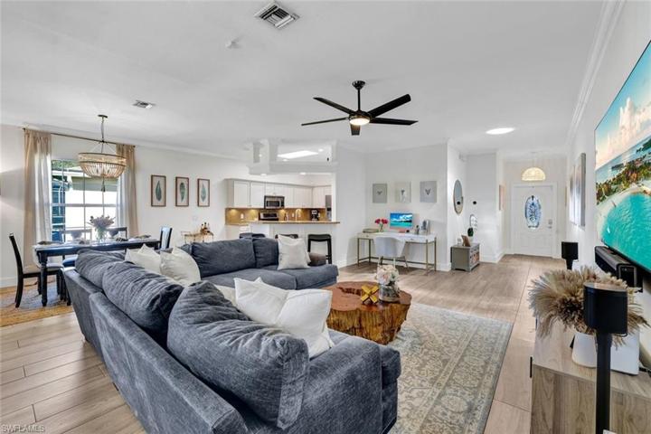 Impeccable residence on an oversized lot with an unbeatable location minutes from downtown Naples, a vibrant array of entertainment & fine dining, & sun-drenched Gulf beaches. This stunning residence boasts an open floor plan, complimented by warm & inviting wood-style flooring that flows gracefully from room to room. The heart of the home is the beautifully updated kitchen, featuring sleek stainless steel appliances, a breakfast bar that’s the perfect spot for morning coffee or casual meals, & a convenient pantry. Escape to the owner’s suite & indulge in quiet opulence within the spa-like en suite bath. This retreat offers dual sinks, chic hardware, & an eye-catching marble-like tile in the shower with a waterfall shower head, & frameless glass shower door entry. Additional features include generous sized guest rooms, a beautifully updated guest bath, & a screened lanai overlooking a spacious backyard. With ample space for a pool, this outdoor oasis is ready to be transformed into your private retreat, perfect for entertaining guests or simply unwinding in style. Maplewood amenities include a clubhouse & community pool. Don’t miss the chance to make this exquisite property your own.