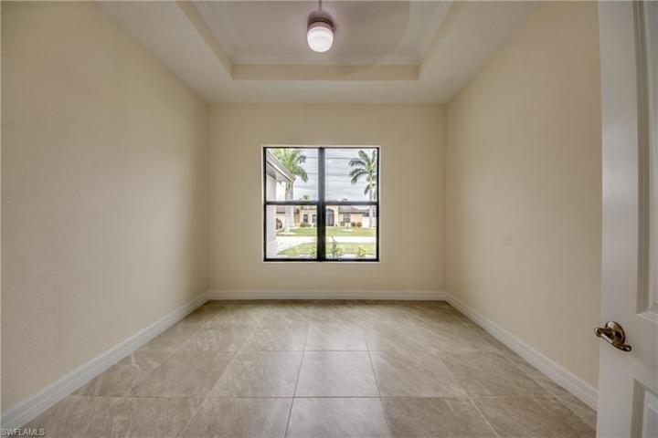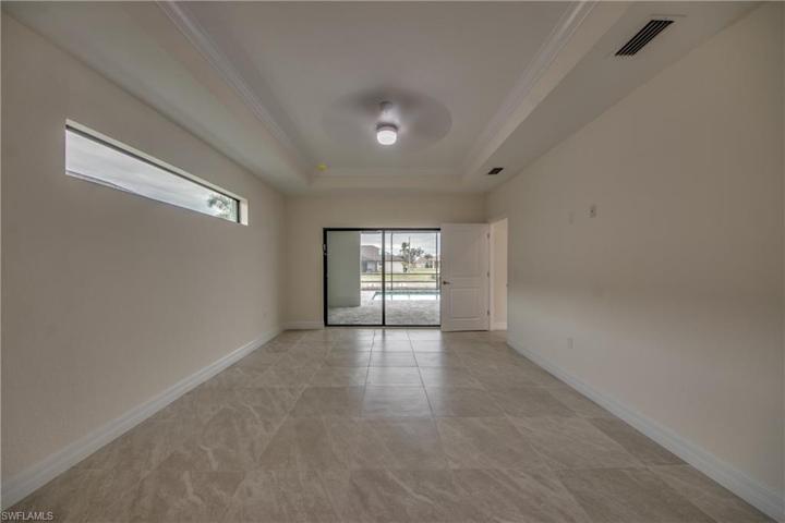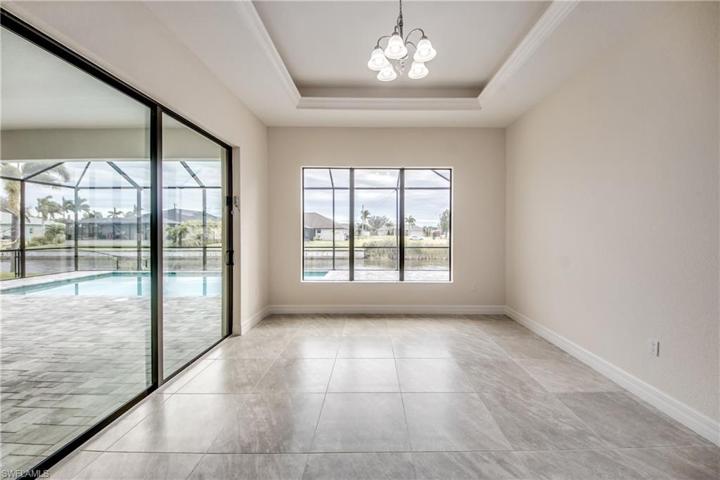 Gulf access new construction home. MOVE IN READY. Located in the sought after SW Cape, this new home offers worry free new construction complete with a one year builders warranty and 10 year structural warranty. Relax on your screened Lanai gazing at the water or kick back on the concrete dock. Once entering the welcoming front entrance, you’ll feel right at home in the expansive kitchen and Great room with tile throughout. The kitchen has beautiful granite counters as do both bathrooms. Speaking of bathrooms, the master bath has separate vanities and a huge shower with dual shower heads and two closets. There is a large den with privacy doors and the laundry room is right off the kitchen for convenience. Exit the laundry room to the 3 CAR garage, the third single garage is extra deep for storage or work room or whatever you desire.