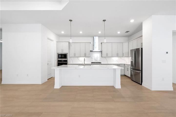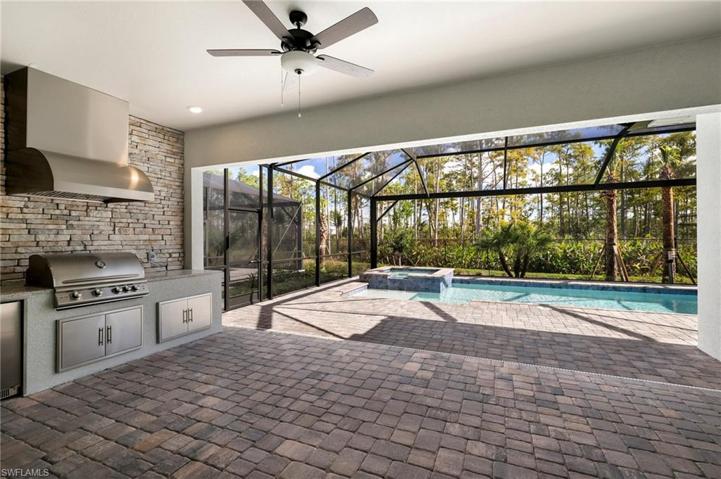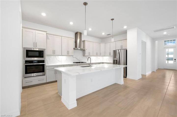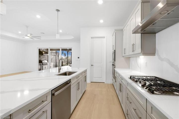 Coastal modern luxury awaits at 13689 Blue Bay Cir, a brand new, never lived in, best-selling Maria floorplan in Vista WildBlue. This home boasts a massive open concept layout, effortlessly connecting indoor and outdoor living. Feel secure with impact windows and doors ensuring safety and energy efficiency. Step outside to a spacious covered lanai, a heated pool and spa, and a well-equipped outdoor kitchen, all framed by a tranquil, private preserve view. The sleek kitchen inside features upgraded solid wood shaker-style cabinetry, upgraded quartz countertops, and stainless steel appliances including a built-in oven and microwave and a natural gas stove. The master suite includes plenty of windows for natural light, large sliders leading to the covered lanai and pool area, his and hers closets, and a spacious bathroom with dual sinks and a massive glass-enclosed shower. WildBlue offers world-class resort-style lakefront amenities, including 800+ acres of recreational lakes, a resort-style pool, lap pool, sandy lakefront beach, attended fitness center, locker rooms, indoor/outdoor full-service restaurant, tennis, pickleball, a pro shop, basketball, boat ramps, and so much more.