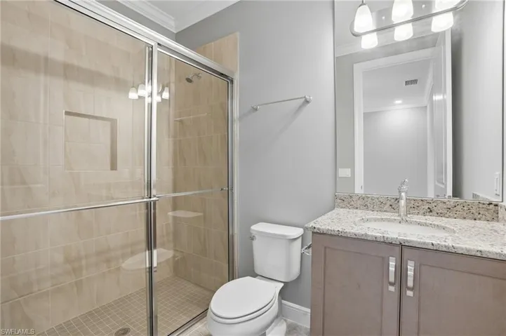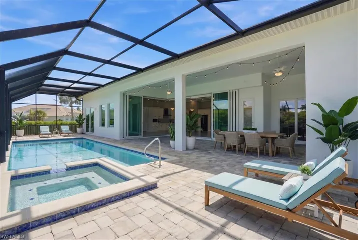 Stunning 2020-Built estate in Belle Meade, South Fort Myers, situated on just under an acre of private land. This 5 bedroom 4.5 bath home offers over 2,900 sq ft under air with high end finishings throughout, including tray ceilings, crown molding, and under mount lighting. This home features four en suite bedrooms, each with its own private bath, offering exceptional comfort and privacy for family and guests! The custom kitchen features black stainless appliances, soft close cabinetry, and walk in pantry, opening to spacious living areas. The primary suite includes direct access to a large laundry room through the master closet, and all bedrooms offer walk in closets. Designed for comfort and functionality, the home is fully wheelchair accessible and includes a setup for a motorized lift in the 3 car garage. Additional features include impact windows and doors, whole house generator, water softener, custom window coverings along with crown molding throughout, and a security system. Enjoy the Florida lifestyle with a heated pool and spa, all set on a rare oversized lot offering privacy and space. A unique opportunity in one of South Fort Myers most desirable communities. This estate community is close to beaches, shopping, restaurants, International Airport and hospitals!
