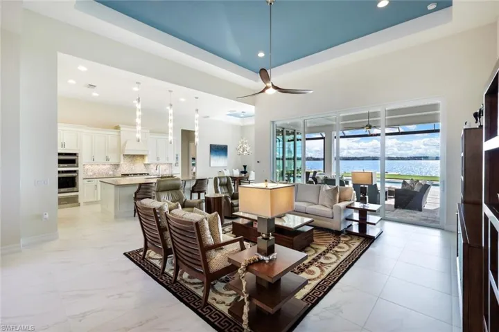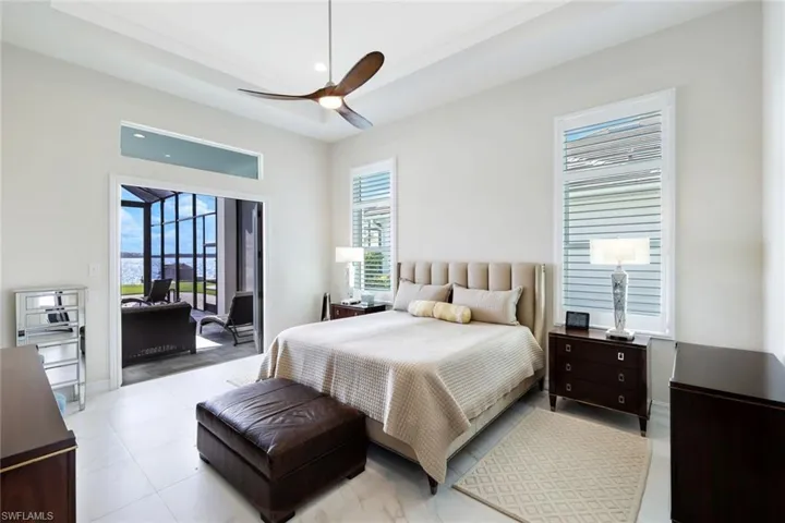 Have the time of your life in your own private piece of paradise! This stunning STOCK SIGNATURE SERIES Madison model offers an award-winning design and legendary STOCK quality! The home has four bedrooms, each with an en-suite and walk-in shower, and a powder room for a total of 4 beds and 4-1/2 baths. The LARGE .417 ACRE, 85-Foot-wide lot overlooks WildBlue Lake, a private, 573-acre navigable freshwater lake with a mile-long view! The Madison model has soaring ceilings, including a 15-Foot-high ceiling in the living room. The luxury kitchen includes upgraded cabinetry, quartz countertops, KitchenAid appliances, wine cooler, walk-in lighted pantry, and RO drinking water system. Luxury Carrara rectified porcelain tile in all rooms enhances the home’s beauty. Impact windows and doors, Storm Smart hurricane shutters on the lanai, GENERAC whole-house backup generator, and hardwired and monitored security system provide safety and security. The home has plenty of storage including custom walk-in closets and custom laundry center. Special under-roof spray foam provides superior insulation and attic temperature regulation that allows for an extra 180 Square Feet of usable storage space above the garage. The Trane 4 Ton and 2 Ton variable-speed HVAC systems and UV air purification provide optimal comfort and even more energy savings. The home has many other practical enhancements, including a hot water recirculation system, plantation shutters, extensive use of pocket doors and dimmer switches, and solid privacy doors. Entertain on the large covered lanai that seats 16 guests, and that has a custom outdoor kitchen with oversized hood and twin side burners, indoor/outdoor SONOS sound system, and lanai cage screened with ULTRASCREEN NO-SEEUM polyester screen. Warm up at the firepit on chilly days. Relax and watch the sun rise over WildBlue Lake while sitting on the large saltwater pool bench and listening to the six spa waterfalls. Easily transport your boating and fishing equipment along the 227-Foot-long custom sidewalk that stretches from the oversize front driveway to your own 300 Square Foot dock. The professionally designed landscaping and computer-controlled outdoor lighting completes the elegant look of the home. Close on Monday, boat and fish on Tuesday! The home is offered turnkey – you can focus on enjoying the home rather than furnishing it. Much of the furniture includes Tommy Bahama, Lexington, and Sligh. Upscale accompaniments include All-Clad cookware, Pottery Barn dinnerware, Schott Zwiesel crystal glassware, and Tritan drinkware for poolside. The garage is fully outfitted with Gladiator and UltraHD storage, and DeWalt tools. Sporting equipment includes a complete set of Callaway golf clubs and bag, indoor/outdoor ping pong table, fishing equipment with Shimano reels, and senior softball equipment.