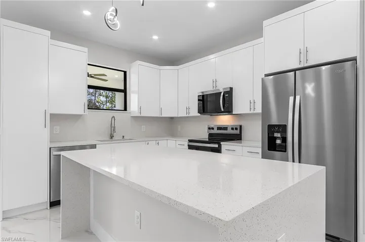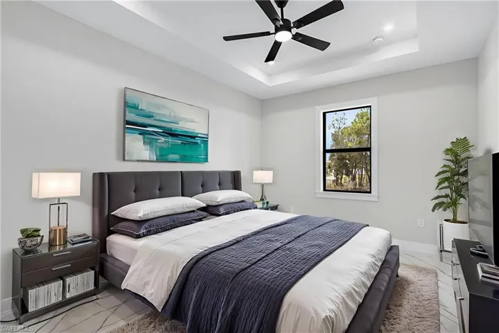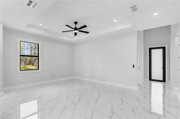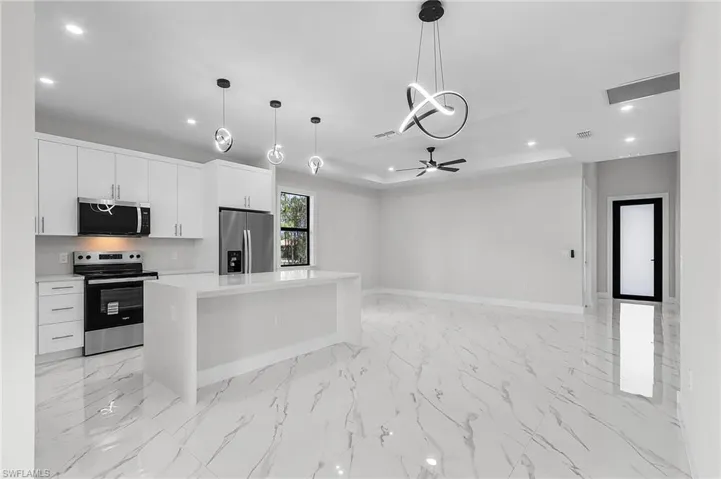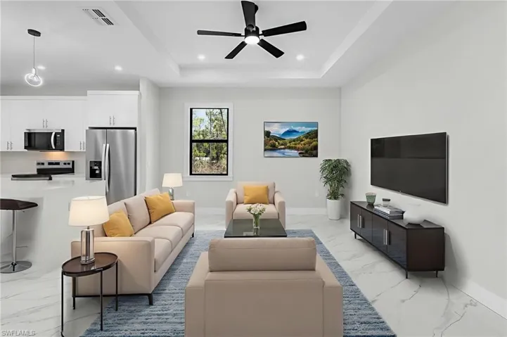 This brand-new 3-bedroom, 2-bath home in Lehigh Acres was built with thoughtful design and everyday comfort in mind. Step inside and you’ll be welcomed by soaring ceilings and tall doors that create an open, airy feel. The heart of the home is the chef-inspired kitchen with quartz countertops, a spacious island, and premium finishes—perfect for both weeknight dinners and weekend gatherings.