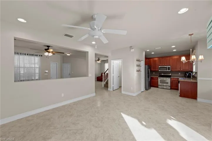 PRICE IMPROVEMENT! This well-maintained 3-bedroom, 2.5-bath, two-story home offers an open and functional layout perfect for today’s lifestyle. The first floor features tile throughout and a spacious kitchen located at the rear of the home, complete with granite countertops, stainless steel appliances, and raised-panel cabinetry. Step outside to an oversized screened rear lanai with concrete paver flooring, overlooking a fully fenced backyard—ideal for pets, play, and outdoor entertaining. Upstairs you’ll find all three bedrooms and two full baths, including a generous primary suite with two walk-in closets and an en-suite bath featuring dual sinks plus a separate soaking tub and shower. Enjoy incredible community amenities including a resort-style pool, fitness center, clubhouse, tennis courts, and more. Conveniently located close to I-75, shopping, dining, and everything Southwest Florida has to offer. At this price, it’s time to MOVE—this home will not last long!