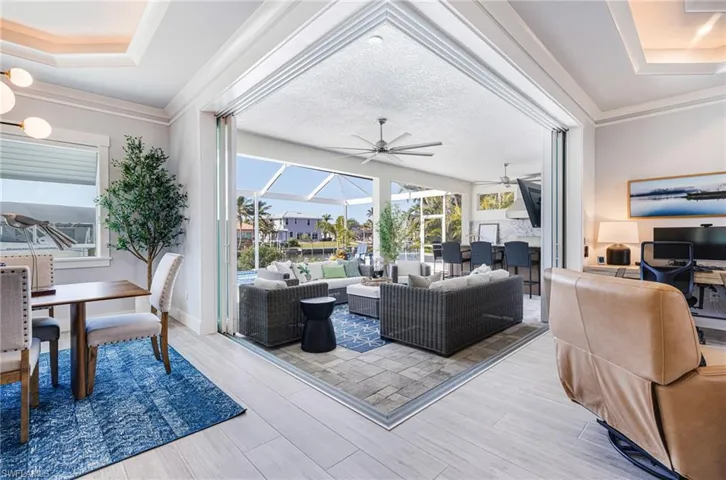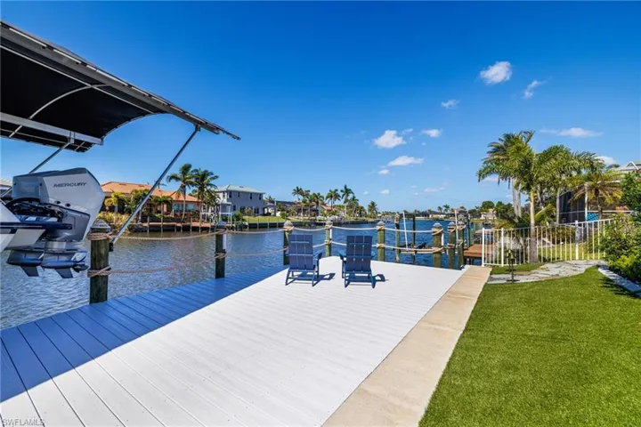 This stunning newer construction home has it all. Located in a quiet and highly sought-after neighborhood in Cape Coral, this home is situated on an gulf-access canal. The upgrades to this home are countless, no detail has been overlooked or expense spared. Enter through the glass double front doors into the spacious open concept living area, tastefully designed and decorated with custom finishes, including an electric fireplace.