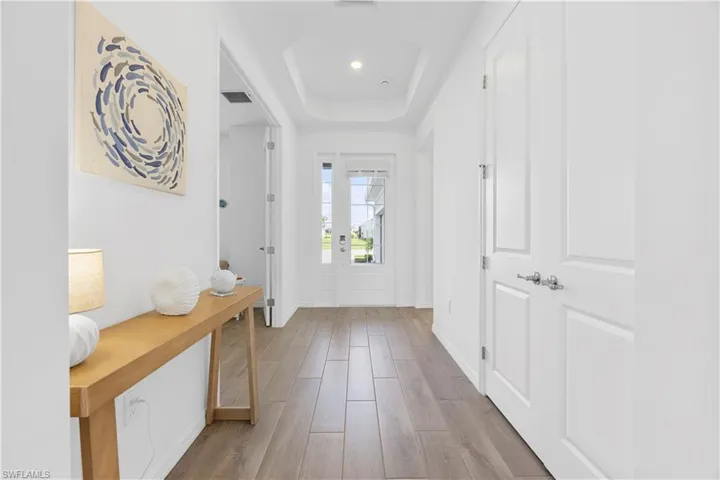 Welcome to your Florida escape in The National Golf & Country Club at Ave Maria. This beautifully furnished single-family home offers 2 bedrooms, 2 full, 1 half bathrooms, a versatile den, and stunning water views with a private screened-in pool and spa. Designed with comfort and style in mind, the interior features coastal-inspired décor, wood-look tile flooring throughout, and an open-concept layout perfect for both relaxation and entertaining. The spacious kitchen flows seamlessly into the main living area, while the den provides the flexibility to work from home or enjoy a quiet reading nook. Step outside to your private oasis—an expansive lanai with a covered seating area, outdoor ceiling fans, and a sparkling pool and spa overlooking the peaceful lake and lush landscaping. Whether you’re enjoying morning coffee, hosting happy hour, or soaking up the sun, this space invites you to unwind in total comfort. This rental includes a Social Membership to The National, granting access to the resort-style amenities including the clubhouse, fitness center, spa, resort pool with cabanas, on-site restaurant, and pickleball and tennis courts. Please note: Golf membership is not available with this rental. Ideally located just minutes from downtown Ave Maria, residents and guests enjoy access to charming shops, restaurants, parks, walking trails, and more. Whether you’re planning a winter getaway, an extended stay, or a long-term relocation, this home delivers the perfect blend of resort-style living and everyday convenience. Already reserved Jan – April ’26. All rates include pool care, landscaping, Wi-Fi, cable, and water.