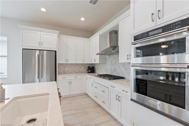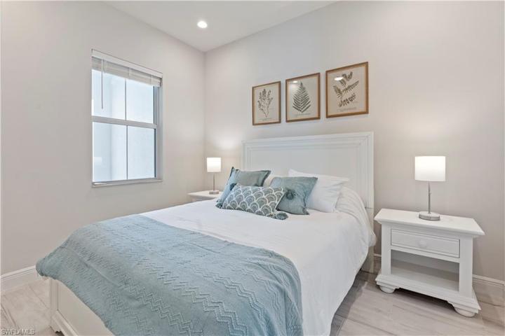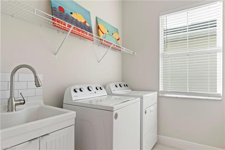Just bring your suitcase because this home is move-in ready, being offered completely furnished, turnkey! Built in 2022, this light and bright property offers the preferred southern exposure and has impact resistant windows and sliders throughout. The popular Baypointe floor plan is excellent for entertaining with an open kitchen and living concept, while offering plenty of privacy between the primary and guest suites. You’ll notice quartz countertops in the kitchen and bathrooms and upgraded tile flooring throughout the home. The primary suite offer a large walk-in closet, dual sinks and a step-in shower. The den is incredibly spacious, perfect for a home office or second living room. Azure is a natural gas community and has excellent amenities including a zero entry, resort style pool with cabanas and a grill area, fitness center, pickelball, tennis, library, social room, games room and more. Located just east of Collier in south Naples with easy access to downtown Naples, Marco island and i-75. What are you waiting for? Come get your slice of paradise today!