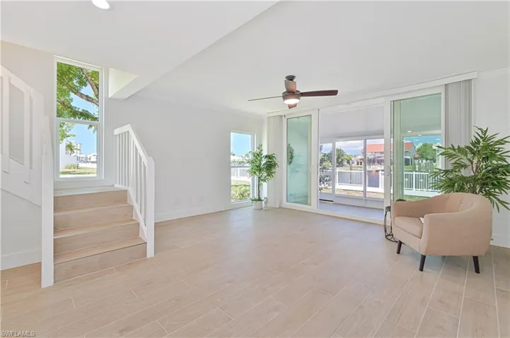 Downstairs is all open for easy Florida living. The kitchen has all new modern stainless appliances, new cabinets for more storage, great tiled floors, a farmhouse sink and a breakfast bar. A lot of working space for home cooked meals…or fun entertaining. Our home provides extra natural light because it’s an end unit, special lighting features and a big plus…full hurricane protection windows / sliders.