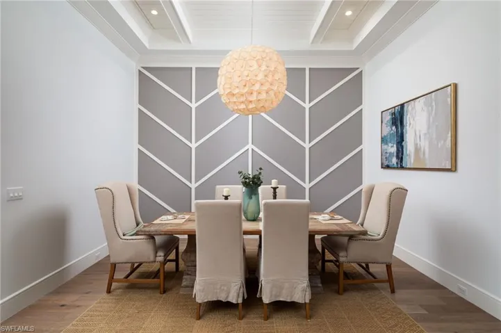 Thoughtfully designed by renowned architect Falconer Jones, this newer construction Lake Park home is just minutes to downtown Naples, with walkability to 5th Avenue and the beaches, offering modern coastal living with high-end finishes and seamless indoor-outdoor flow. The floor plan is ideal for entertaining and family gatherings, with wide-plank wood flooring throughout, designer tile, and curated finishes that give the home a clean, modern feel, while vaulted ceilings create volume and natural light across the main living spaces. The chef’s kitchen features custom KBC cabinetry, a large center island with pendant lighting, 36” gas cooktop, Samsung and Dacor appliances, and a wine cooler—designed for both everyday living and entertaining. The outdoor living space is a true highlight, featuring a south-facing gas-heated pool that enjoys sun all day, along with a water feature, covered lanai with roll-down screens, outdoor kitchen with gas grill, and outdoor shower—creating a private resort-style setting. Built with concrete block construction, PGT impact windows, and a standing seam metal roof for durability and peace of mind, along with an air-conditioned garage offering flexible use and added comfort. Located in the highly sought-after Lake Park neighborhood, just minutes to downtown Naples and 5th Avenue, in the heart of Olde Naples.