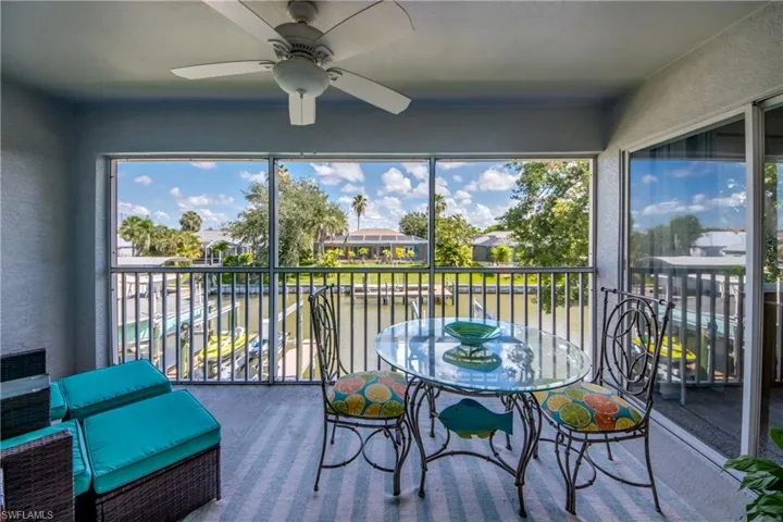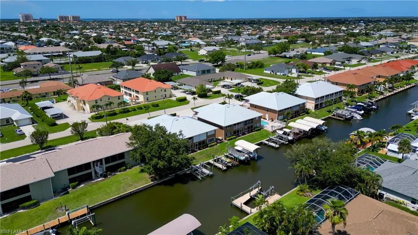 THIS ONE CHECKS ALL THE BOXES! A true REAL ESTATE TRIFECTA, this rare gem offers Gulf access with a PRIVATE dock with boat lift, a PRIVATE one-car garage, and an ultra-desirable THREE-BEDROOM, END-UNIT layout—all tucked into one of the most sought-after locations in Southwest Cape Coral. Welcome to Palm Breeze, a charming 2003-built condo community with a brand-new 2025 metal roof with new gutters, a sparkling heated pool and relaxing inground spa. Just steps from your door, enjoy the view of your very own composite dock, complete with boat lift (large enough to carry the owners 6,500 lb boat) and kayak launch dock—ideal for morning paddles or sunset cruises. This is Southwest Florida boating at its best, with convenient access to the Gulf of America, barrier islands, world famous beaches and canals teeming with marine life. Inside, you’ll love the open great room floor plan, perfect for entertaining or simply enjoying the serene canal views. The kitchen features timeless Uba Tuba granite counters, stainless steel appliances, and crisp white cabinetry. The spacious master suite overlooks the screened lanai and waterway and offers dual sinks, a walk-in shower and a walk-in closet. The second guest bedroom is nearly as large as the master and boasts its own private balcony—the perfect spot for coffee, a good book, or an afternoon nap in the breeze. You’ll appreciate the very well cared for condition of this property. The condo can be available turnkey if desired, this spotless condo is move-in ready with a fresh, clean feel (pet free and smoke free unit). Plenty of additional great updates and features: 2020 HVAC, 2021 water heater, 2021 washer/dryer, humidistat, CPVC plumbing and in-unit laundry. PLUS store all your Florida activity toys with an oversize one car garage with over 200 square feet of storage located immediately below unit. This end unit floorplan is light and bright and feels like home! Living here means you’re within walking and biking distance to dining and minutes to grocery, banking, boutique shops, medical and entertainment. Whether you’re docking at Rumrunners for dinner, biking through Rotary Park, or exploring nearby Cape Harbour, the best of Cape Coral is right at your fingertips. Love pickleball or tennis we’ve got that too! Just a short jaunt away at Camelot Park. Reasonable HOA dues of just $1,560/quarter, pet-friendly policies and flexible rental terms make this an ideal full-time residence, vacation getaway or investment opportunity. Seller is willing to consider carrying a second mortgage—don’t let this rare find slip away! The location is unbeatable—just 30 minutes to RSW International Airport, Fort Myers Beach and the Sanibel Causeway, putting world-famous beaches, island escapes, and easy travel access all within a short drive. If you’re looking for a low-maintenance lifestyle in a stunning, tranquil setting, this is the perfect fit. Don’t miss this rare opportunity—schedule your private showing today!