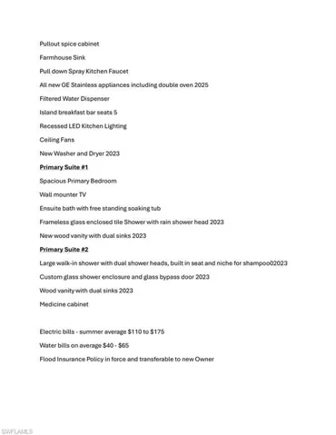 BEAUTIFULLY REMODELED 3 BEDROOM, 2 BATH HOME WITH 2 PRIMARY SUITES AND A SEPARATE PROFESSIONAL WORKSHOP INCLUDED! Located in the historic McGregor/ Whiskey Creek area, everything has been remodeled and updated with custom finishes throughout. Brand new roof in 2025. Flood insurance in place and transferable to new owner. Double glass-doors open to a bright and airy layout featuring a spacious living room, dining area, family room, and beautifully reimagined kitchen — all flowing together for a seamless and open living experience. The kitchen features white wood soft-close cabinetry, custom Acacia wood butcher block countertops, a farmhouse sink, floor-to-ceiling pantry cabinets with pull-out shelving, hidden pop-up electrical outlets on the breakfast bar and stainless steel appliances, including a double oven range. Breakfast bar has seating for 5. Enjoy the luxury of two primary suites, each with its own spa-style ensuite bath. The main suite boasts a frameless glass-enclosed tile shower with rain shower head, a freestanding soaking tub, and dual-sink vanity, creating a serene retreat. The second suite features a modern walk-in shower and dual vanity. The third bedroom is perfect as a guest room or home office. Tile flooring throughout the living areas. One of the home’s most impressive features is the professional-grade 40′ x 14′ insulated workshop, located just off the garage. It’s the kind of space every serious hobbyist dreams of — fully insulated, with roll-up doors on both ends and 100 amp electric service, perfect for woodworking, studio, hobby area or possibly a home gym. Major upgrades since 2023 include: Brand new roof (2025), New HVAC system & water heater, new 200 amp breaker and 70% new electrical wiring with new breaker panel, all new kitchen and baths, new interior doors, trim, and baseboards. Fresh interior and exterior paint. New landscaping and irrigation system for the beds. Located just minutes from beaches, shopping, dining, golf, and top-rated schools, this move-in-ready home offers exceptional style, space, and location.