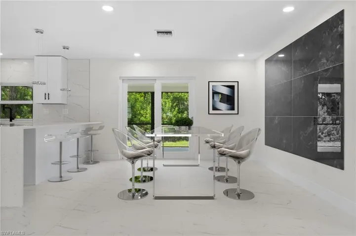 Beautifully remodeled home just minutes from the river, offered with an additional lot next door. Upgrades include a new roof, A/C, water heater, hurricane-rated garage door with opener, epoxy flooring in garage and patio, and fresh modern paint inside and out. The custom kitchen features quartz countertops with a waterfall island, premium tile, Samsung appliances, and designer backsplashes. Bathrooms include quartz vanities, new bathtub, sinks, faucets, toilets, custom shower glass, and updated exhaust fans. Additional updates include new doors, patio screens, flooring, baseboards, closet shelving, lighting, fixtures, and windows in the kitchen and baths. Elegant entrance tile completes this move-in ready home with expansion or investment potential on the extra lot.