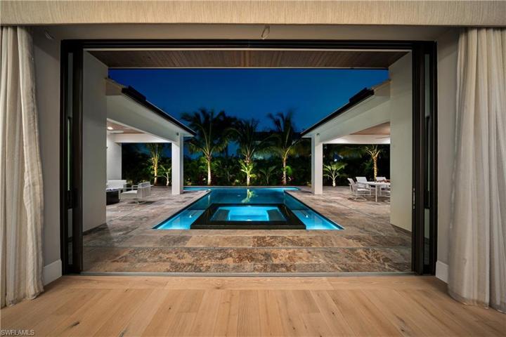 Discover unparalleled luxury in this Park Shore masterpiece by PGI Homes. Architectural brilliance meets Florida’s splendor with a striking mitered tile roof and elegant entry, enhanced by VIVA’s exquisite landscape design. Inside, white oak floors, York & Thibaut wall coverings, John Richard mirrors, and bespoke lighting set a stage of sophistication. The kitchen, a culinary dream, features exquisite double stacked cabinetry, Cambria countertops and WOLF & SUB ZERO appliances. Each of the three expansive bedrooms boasts en-suite baths, offering private retreats within this haven of elegance. The den/flex room adapts to your lifestyle, perfect for work or relaxation. Outside, a stunning pool, spa, and floating outdoor summer kitchen finished in Dekton promise endless days of leisure on the travertine stone deck. The home comes exquisitely furnished by Robb & Stucky, ensuring every aspect radiates comfort and luxury. Experience this rare jewel of Park Shore, where every detail assures a life of unparalleled excellence. Make this sanctuary yours and embrace the epitome of sophisticated living.