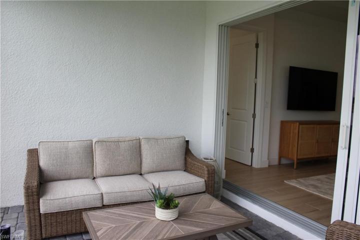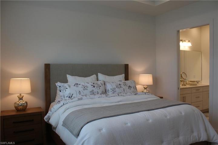 Open the door, opportunity is knocking! Complete turnkey villa with over $100,000 in upgrades! This stunning Baypointe model home is ideally situated in one of Naples premier gated communities. Beginning with a beautiful landscaped, covered entry and custom four lite front door is just the start of the meticulously maintained home. Your gourmet kitchen boosts granite countertops, stainless steel appliances and a natural gas cooktop. It flows effortlessly into the dining and living areas and continuing to the lanai with grand long water and fountain views. The master bedroom is full of natural light and a serene lake view. The master bath is equipped with dual sinks, granite counters, large tiled shower with glass doors and a generous walk in closet. Guest room offers a walk-in closet and a shared full size that with tiled shower and glass enclosure. French door entry to the den which can double as extra sleeping area or TV room. Beautiful plantation shudders throughout accentuate the charm of home. Laundry room is equipped with a full size utility sink, cabinets and new washer and dryer. Azure amenities include Resort pool, fitness center, tennis, pickleball and more! Paradise awaits you at Azure in Naples, FL.