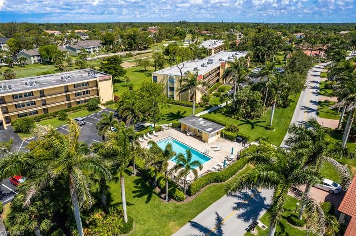 Introducing a 1-bed, 1-bath condo in a vibrant 55+ community. This top-floor unit offers stunning sunrise views and 180-degree golf course panoramas. Inside, discover upgraded features like granite countertops, and modern cabinetry in the kitchen. This condo includes impact windows, plantation shutters, and various upgrades for long-term peace of mind. Bonus storage and 1 parking space is included. Amenities include 3 pools, shuffleboard, tennis, clubhouse, and more. Conveniently located minutes from Naples’ beaches, shopping, and restaurants. Embrace Florida living in this well-maintained condo!