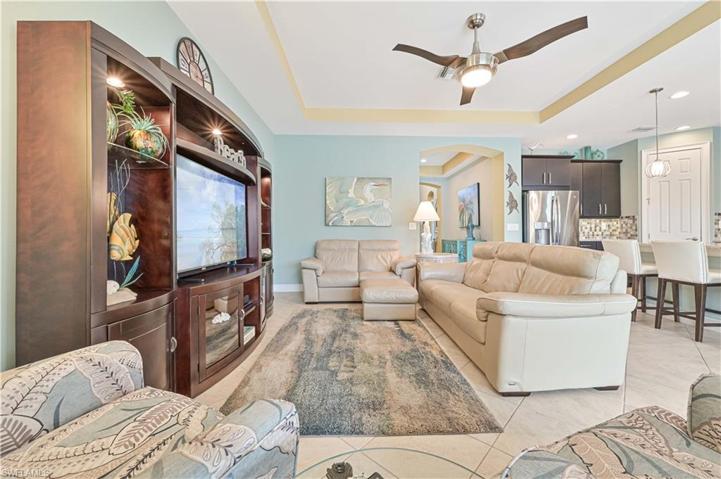 Spectacular lake views! This amazing 3-bedroom plus den, 2-bathroom Edison floorplan features stunning vinyl and tile flooring throughout. Experience peace of mind with hurricane roll-down shutters on the lanai, while enjoying the perfect blend of style and functionality with plantation blinds adorning each window.