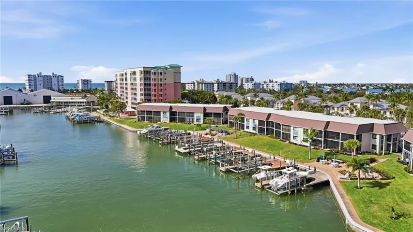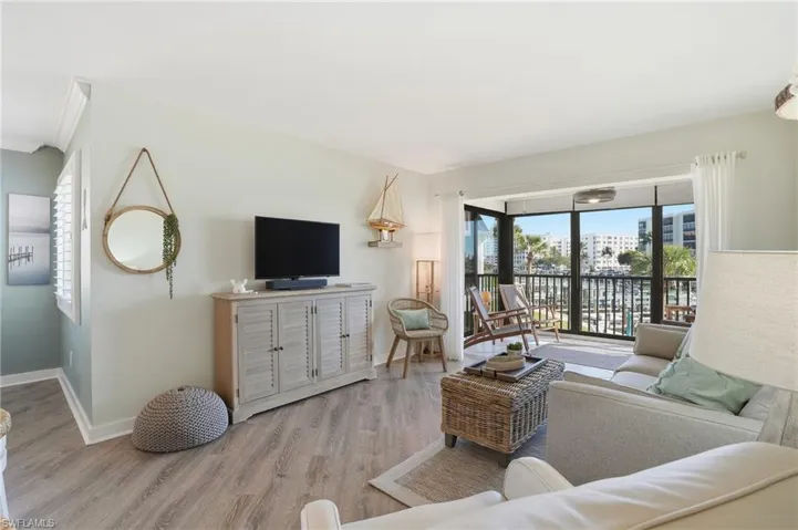 Waterfront Corner Residence with Direct Intersecting Canal Views! This beautifully redesigned second-floor 1-bedroom, 2-bath corner/end unit offers sweeping water views from three sides and expanded indoor living space after opening the lanai under air. Thoughtfully curated with a coastal-inspired interior and high-end finishes, this residence delivers both style and function. Notable Upgrades & Features: •Hurricane impact doors & windows •Plantation shutters throughout •High-end furnishings (included) •Raised ceilings in both remodeled bathrooms •Fully remodeled bathrooms, master shower only and full guest bath with shower and cast iron tub -upscale finishes •Exquisite quartz countertops •Stainless steel kitchen appliances •Luxury vinyl wood flooring •Decorator lighting and ceiling fans •Sun-shade blinds for added comfort and privacy •In-residence washer & dryer •Additional attic storage •Custom woodwork and private interior storage •Corner/end unit with intersecting canal views •Water views from three sides •Expanded living area with enclosed lanai under air. Enjoy your mornings watching dolphins, manatees, and boats glide by, or cast a line right from your waterfront setting. Located just steps from the white sandy beaches and turquoise waters of the Gulf of Mexico, this residence offers the ultimate coastal lifestyle. Walk to Santini Marina Plaza, featuring the full-service FishTale Marina, waterfront dining, and resort-style shops, and end your day with breathtaking sunset views over the Gulf. With weekly rental flexibility and pet-friendly policies, this property presents an excellent opportunity for personal enjoyment or investment. Your perfect “peace” of paradise awaits in Fort Myers Beach