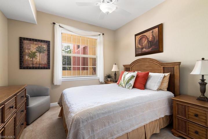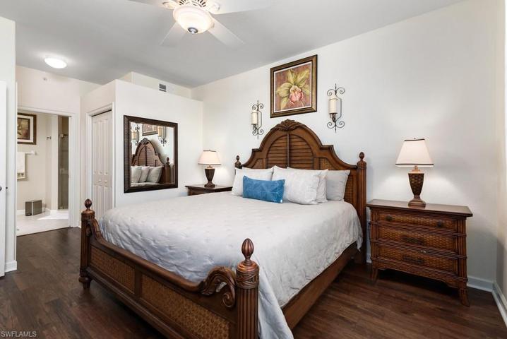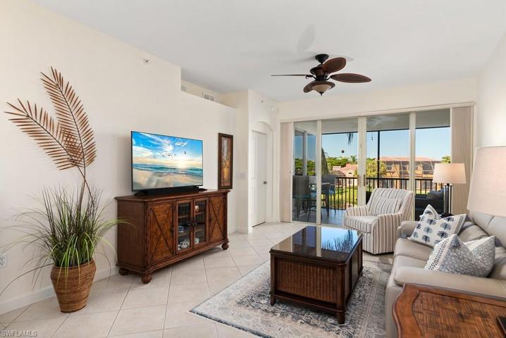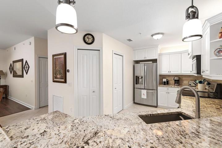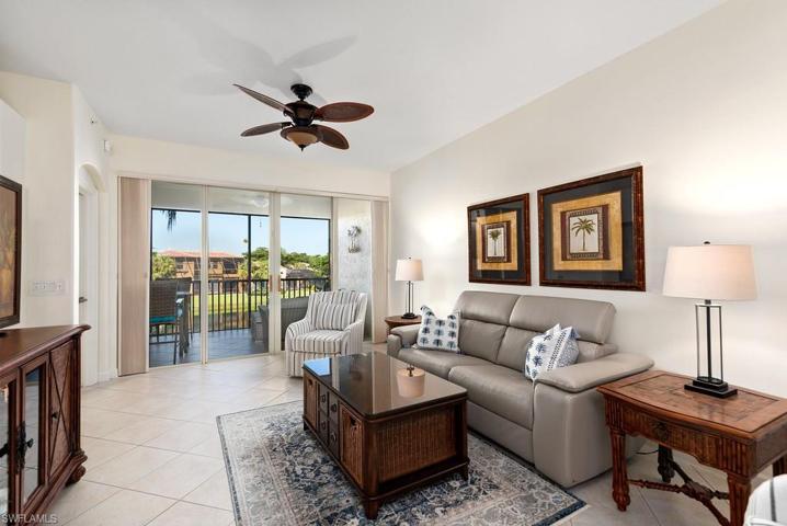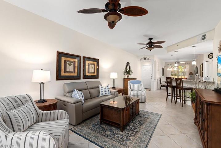 QUICK! Won’t last long, second floor Terrace unit, elevator building being offered Freshly painted & beautifully furnished with some exclusions, Kitchen has been redone with granite counters stainless steel appliances, only 5 years old, white cabinetry, under counter lighting, Kitchen opens to the great room with fabulous views of lake and fountain. Bali Blinds on the sliding doors out to the Lanai, where you can enjoy your evening cocktail and view the beautiful sunsets. AC Handler replaced 2023,Hot water heater 2022, Tile throughout living area, wood flooring in den and master bedroom. Master bath has double sinks and a seamless shower door. Rapallo is a Mediterranean style resort community with great amenities. Two lagoon style pools with spa and rock grotto waterfalls, jr olympic screened lap pool, clubhouse with full catering kitchen, library, fitness center with full time fitness director,, 5 har tru tennis courts with full time tennis pro, activity director will keep your calendar full with social events. Bocce Ball fishing piers, jogging paths, Botanical gardens so much more but the best part, walk to the Coconut Point Mall and just minutes to the beautiful beaches, only 12 miles to the Airport.