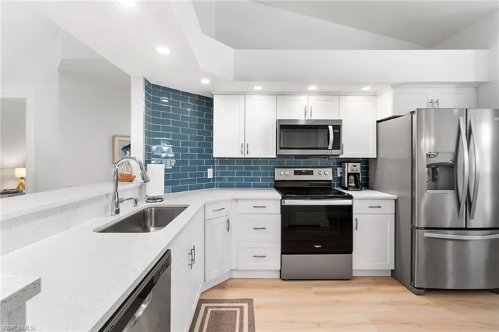 Ideally located just a 5-minute drive from the white sands and turquoise waters of Bonita Beach, this completely remodeled end unit, complete with home warranty, offers the perfect blend of coastal convenience and modern comfort. Offering three full bedrooms, you’re welcomed with a bright, open and airy design featuring a spacious living area. The well-thought-out split floor plan features a secluded main bedroom with an ensuite as well as separate guest rooms, ensuring a balance of privacy and functionality perfect for hosting friends and family. Recent upgrades totaling $100,000 showcase contemporary finishes and quality craftsmanship. An office space will suit your needs before unwinding with a beverage of your choice in the comfort of your own private lanai. Coastal modern furnishings accentuating these upgrades are all included. Situated west of US41, the desirable Vanderbilt Lakes community offers two pools, spas, tennis and pickleball courts all complemented by low HOA fees. Experience the charm of the Vanderbilt Drive Bike and Walk Path which extends to Delnor Wiggins Pass State Park. Indulge in a variety of dining and shopping options, all conveniently within biking distance. Your coastal retreat awaits.