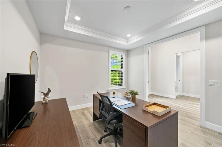 Enjoy stunning peaceful views of the long lake and natural preserve from your spacious screened-in lanai with private pool and spa. This beautiful Pinnacle model home offers 3 bedrooms plus den/office, 3 full bathrooms and 3-car garage. Freshly painted inside and out and featuring luxury upgrades throughout, including Zero Corner sliders to lanai, wood-look tile in living areas and plush carpet in the bedrooms, plantation shutters, custom light fixtures, impact resistant windows & doors, natural gas (cooktop, pool, spa, water heater, full house generator) and more! The stunning chef’s kitchen includes upgraded stainless-steel appliances, center island with extra cabinet space, tile backsplash and crisp white cabinets. Enjoy your private backyard with brick pool deck, a large sitting area that has been pre plumbed for outdoor kitchen, heated pool and spa, and tranquil views. The large laundry room was completely built out with cabinets and utility sink. Located in the beautiful gated community of Winding Cypress with world-class amenities. Featuring an on-site restaurant, the Shady Palm, a resort-style pool, tennis, pickleball & bocce courts, a dog park, well-appointed fitness center, internet café and an array of social events. Centrally located and just a short drive to Naples pristine beaches, shops and dining.