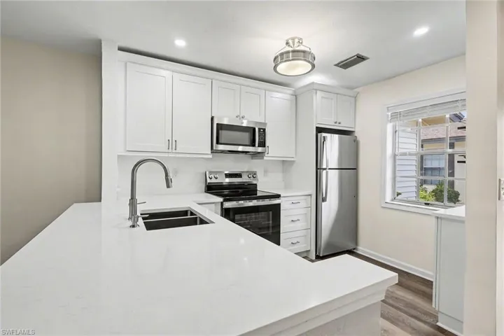 Beautifully updated end-unit villa offering added privacy and abundant natural light throughout. This pet-friendly residence features quartz countertops, new appliances, and a built-in coffee bar in the kitchen, perfect for everyday living and entertaining. Enjoy new waterproof luxury vinyl plank flooring, fresh interior paint, and a fully remodeled bathroom. Step outside to your private courtyard-style backyard, ideal for relaxing or entertaining. Conveniently located just a short walk to the community pool, this property is a hidden gem with low condo fees. Ideally located near Naples’ famous 5th Avenue, as well as area beaches, shopping, dining, and golf, completing this exceptional opportunity.