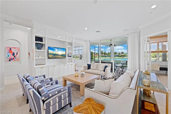FINALLY! Opportunities to own a residence with a rare view like this are few and far between. Perfectly positioned in one of the Mediterras most coveted locations, this exceptional residence offers the space and privacy of a single-family home with the effortless ease of maintenance-free condo living. Expansive living spaces, refined updates, and an atmosphere designed for both entertaining and everyday comfort. Thoughtfully updated and beautifully maintained, a blend of Florida style and convenience! Generous rooms provide a sense of openness rarely found in condominium living, allowing the home to live comfortably and privately, much like a single-family residence. The true centerpiece is the rare lakefront setting—a view like no other in Calabria! Mediterra Club boasts a newly renovated beach club on The Gulf of Mexico with dining, beachside bar and pool, two 18-hole Tom Fazio golf courses, a sports facility with world-class tennis courts. This gated community is considered one of THE ELITE EIGHT in SWFL, with 1,000 acres of open space, lakes, parks and nature preserves, country club programs and options to fit your needs. Roof replaced 2020. HVAC new in 2022. Tankless Gas Water Heater by Nuvian new in 2024. Two remodeled baths 2026. Garage painted 2026. Water filtration system not included but negotiable. Lanai furniture included with sale!