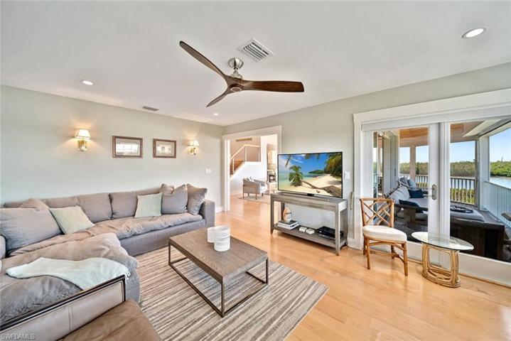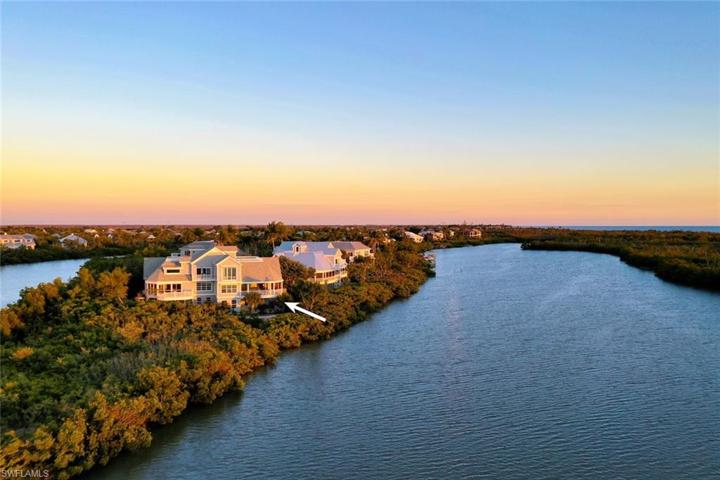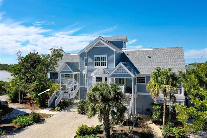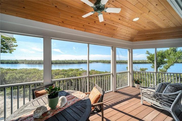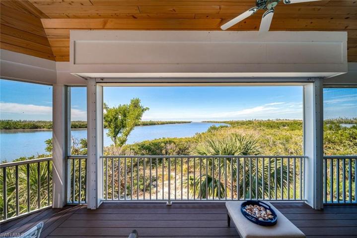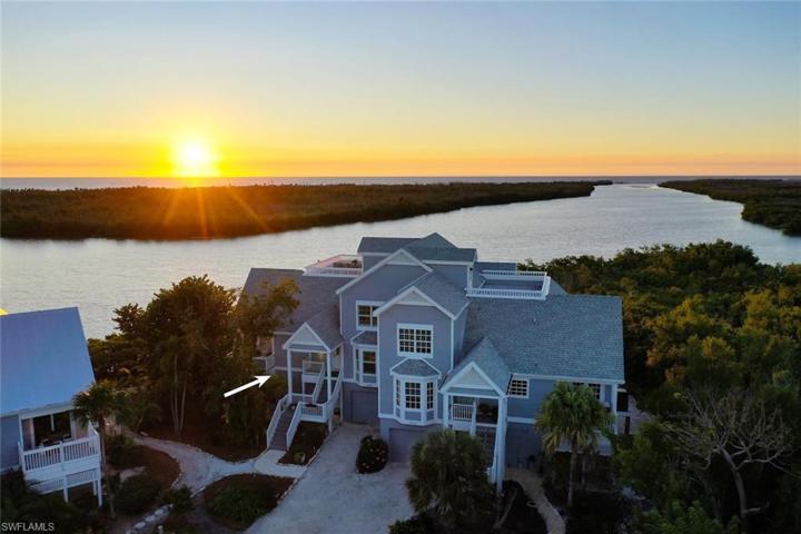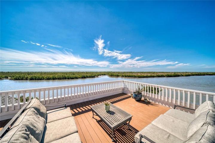 Unequivocally one of the finest views on the barrier islands. Professionally remodeled a few years ago, this townhome is the epitome of island living at its finest. Upon entering your eyes are drawn toward the serenity of Clam Bayou, an active tidal body with jumping fish, manatees, pelicans & blue herons soaring above. Fully equipped chef’s kitchen appointed with Quartzite, upper-end appliances & custom cabinetry. High ceilings in the great room w natural light and panoramic views. Transition to the den, a guest suite, & half bath. The water views continue to the 2nd &level primary suite with a balcony & gorgeous bath. Enjoy sunrises from another guest suite on this level. Up one more level and you will be taken aback by the sunsets from the rooftop deck. Your very own “Bird Nest” above the tree line with 280-degree views of a sanctuary and the azure waters of the Gulf of Mexico protected by barrier islands of mangroves. Superbly constructed of concrete pilings, precast subfloors & poured concrete beams; a fortress of sorts. Newer roof, impact windows & Hardie siding. Launch your kayak, follow the beach path to Bowman’s Beach, swim in the HOA pool and enjoy tennis & pickle ball.