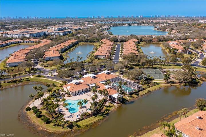 $26,000.00 BELOW APPRAISED VALUE of $550,000.00! Motivated Seller -The longest double fountain view in Bridgewater Bay. Located in N. Naples, 5 miles from the crystal sand beaches. Filled with light, spacious & very well-maintained. Split bedroom design for privacy. Corner, 2nd-floor unit has soaring ceilings & spectacular views. Features: eat-in kitchen, formal dining, large open living room w/ awesome views over the lake & single-car attached garage. New quartz kitchen countertops & designer glass mosaic backsplash. New sink & cabinet pulls. 18” tile on the diagonal throughout the main living areas. New carpet in bedrooms. All new lanai & guest bedroom screens. Dual sinks in the primary bath, newer A/C with warranty till 2028 and water heater, ceiling fans, Samsung appliances, Automated A/C, kitchen lights & front door. Secure Safe in primary. New roof in 2018. Just 20 mins to the airport, near the Collier Library, Water Park & The Mercato shopping/entertainment! A prime located & gated community with many amenities including Fitness center, Resort pool, lap pool & spa, Hot & Wet Saunas, Jogging paths, Tennis, Pickle Ball, Bocce Ball, Community room & Super social calendar!